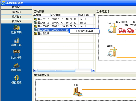左侧列表显示"搅拌站"名称,即添加标注时的"发货方",根据调度要求,选择搅拌站进行调度。