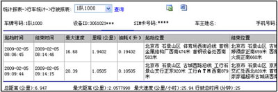 以报表的形式显示出某一辆车在某段时间内的速度,里程,油耗,位置等信息