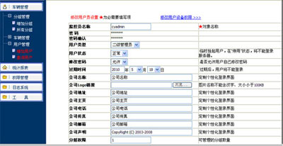 这时,这个二级管理员已经创建好了,他用一级管理员刚才创建的用户名、密码就可以登录后台管理系统,在自己的权限内,自主添加分组,用户,车辆,自主经营管理。