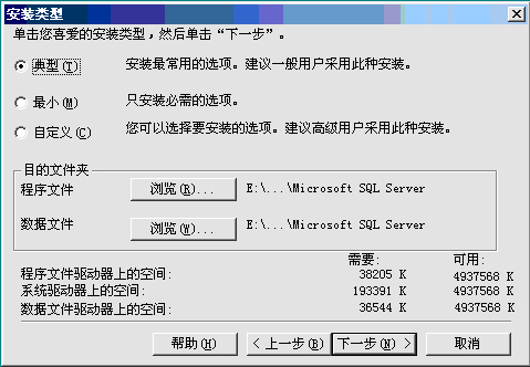 3. 将鼠标移至“安装数据库服务器(S)”单击左键。弹出如下界面: