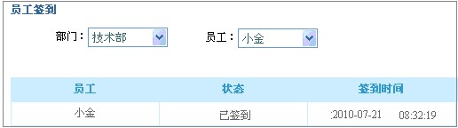 在业务通桌面选择 “选择 ---> 员工签到”,进入员工签到界面,