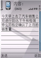 3)发送日志:下班前用手机发送工作日志,在业务通桌面选择“选择 ---> 工作日志”,进入发送工作日志界面,业务员可直接在手机上编写工作日志,发送平台。 如下图: