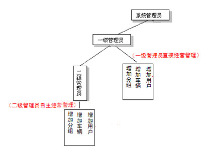 1. 系统管理员可分配一级管理员,并指定一级管理员的权限。(一级管理员可管理分组、用户、车辆的数量等。)