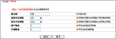 备注: 增加车辆时,如果选多个分组,那么这辆车就可被多个分组的监控员监控。