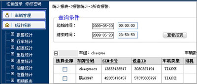 以报表的形式显示出某一辆车在某段时间内的速度,里程,油耗,位置等信息