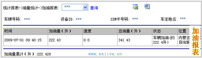 2>.加油报表:统计车辆在某一段时间内的加油记录,包含时间,加油量,加油后的总油量,当时车辆的位置等。