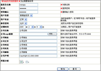 监控员名称:增加的用户(普通监控员)名称