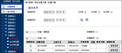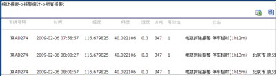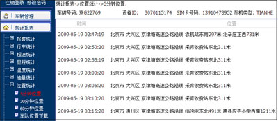 以报表的形式显示出车辆在某一段时间内的停靠时间及停靠的位置等信息。