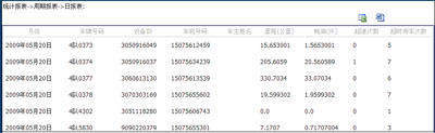 日报表是以天为单位,记录车辆的行驶里程,油耗,超速,超时停车情况的汇总报表,用户可通过日报表对车辆在这天的状况有一个简明的了解;也可以日报表为基础,根据需要进一步查询里程,油耗等报表。