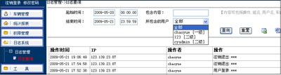 一级管理员可查询自己在某段时间内登录后台管理系统的操作的内容,也可以查询其下属二级管理员在某段时间内登录在后台管理系统的操作的内容。
