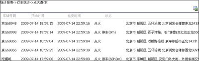 以报表的形式显示出车辆在某一段时间内处于点火状态的起始、结束的时间以及起始、结束的位置等信息。