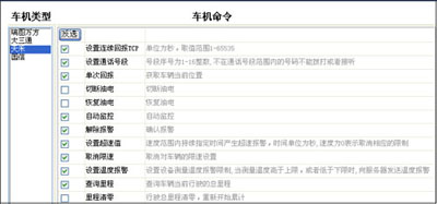 按钮,进入车机命令页面。上一步中给二级管理员选中的车机类型,所支持的所有命令都在这里罗列,给其分配可用那些命令的权限。