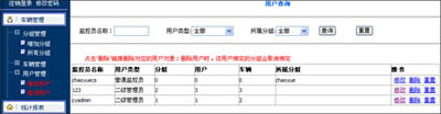 这时,这个二级管理员已经创建好了,他用一级管理员刚才创建的用户名、密码就可以登录后台管理系统,在自己的权限内,自主添加分组,用户,车辆,自主经营管理。