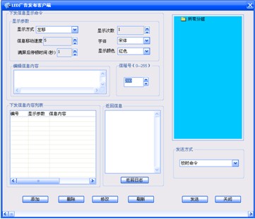 <4>在"下发信息命令栏"填写所要发布广告的显示参数、信息内容,点击