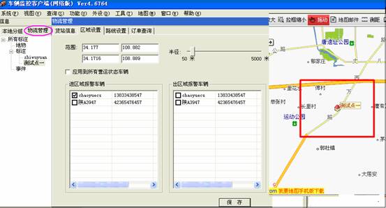 <1>在物流管理—>标注 中鼠标双击选中一个标注,地图中弹出区域设置对话框;