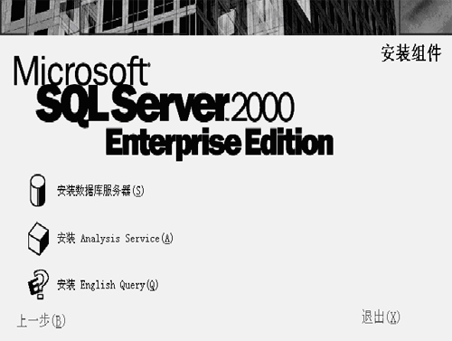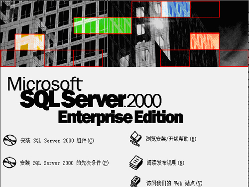 1. 运行SQL Server2000光盘下的Autorun.exe文件会弹出如下界面: