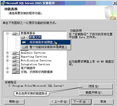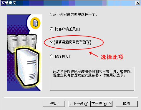 3. 将鼠标移至“安装数据库服务器(S)”单击左键。弹出如下界面: