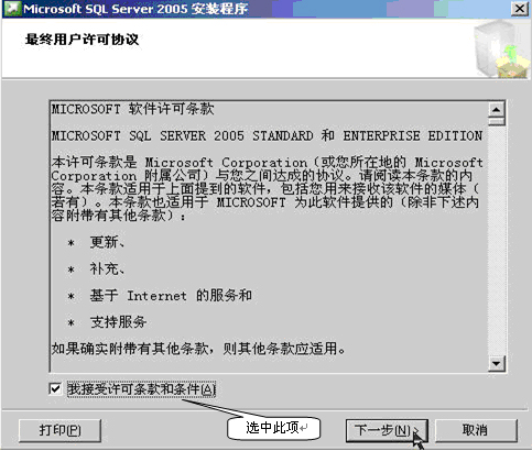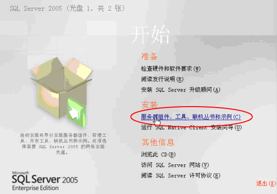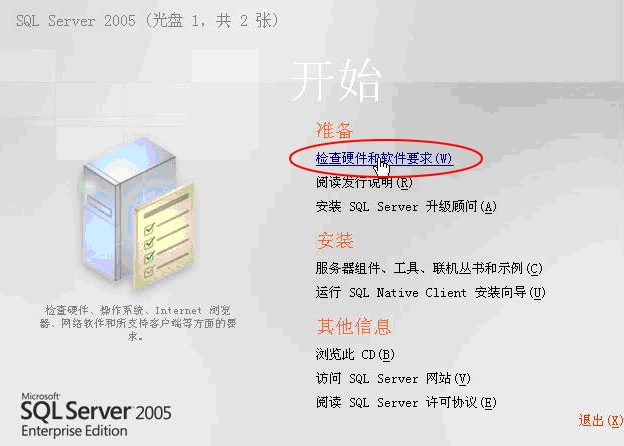 下面就开始使用安装向导进行安装,安装的SQL Server 2005版本为Microsoft SQL Server 2005 Enterprise Edition(32),共两张光盘。