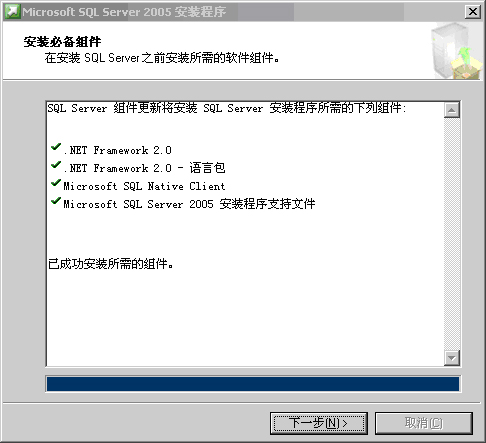 出现“安装必备组件”界面,耐心等待系统自动安装所必需的组件,如图1.7所示。