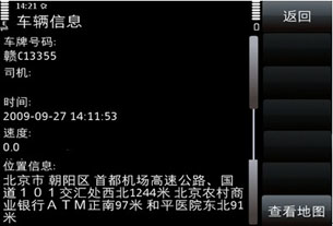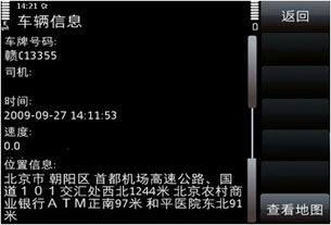 2)文字显示出车辆最近一次回传数据的时间,速度,状态,位置等信息。