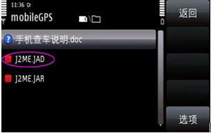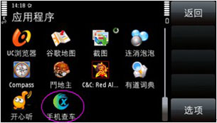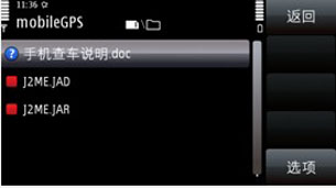 第六步:安装J2ME.JAD后,在应用程序中出现“手机查车”图标。