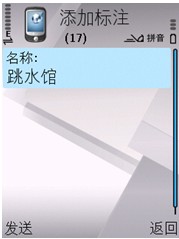 在业务通桌面选择 “选择 ---> 添加标注”,进入添加标注界面,如:添加标注“跳水馆”(如下图)